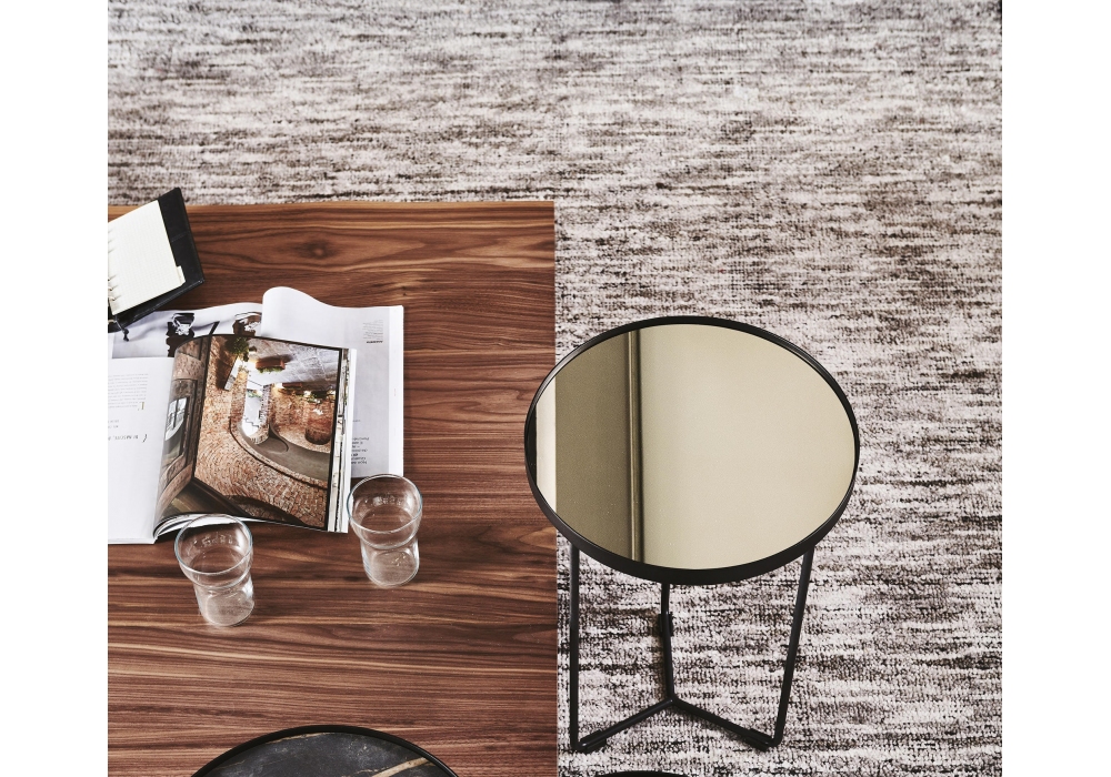 Billy conçue par Studio Kronos pour Cattelan Italia est une table basse avec base en acier peint en relief noir et plateau en verre miroir bronze. Disponible en plusieurs tailles.