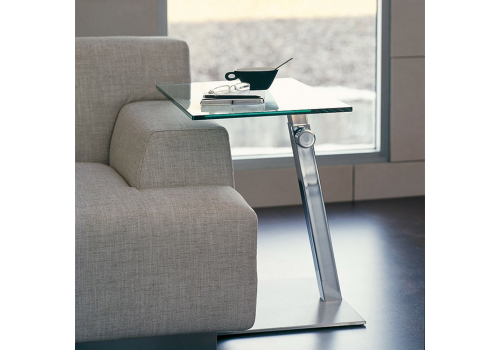 Lap conçue par Giorgio Cattelan pour Cattelan Italia est une table d'appoint avec plateau en verre clair 12mm rectangulaire ou façonné. Base en acier inoxydable avec pied chromé ou revêtu en cuir de selle disponible en différentes finitions. Avec hauteur réglable. Disponible en deux dimensions.