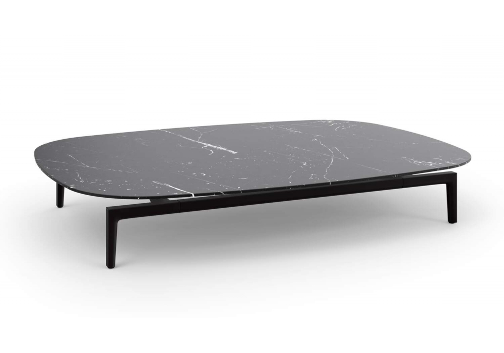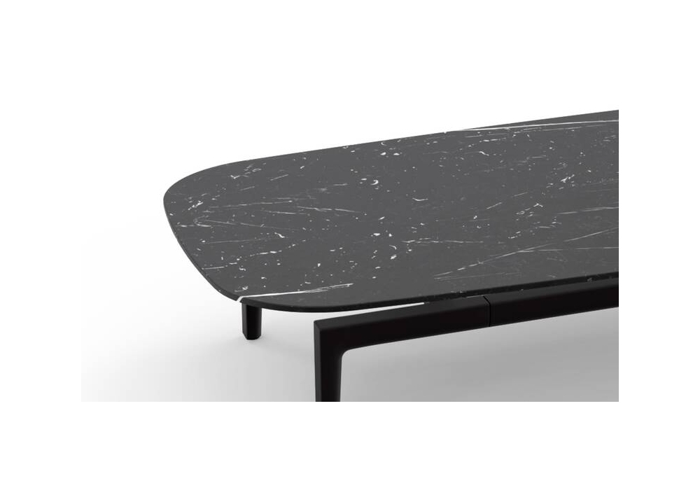 249 Volage EX-S conçue par Philippe Starck pour Cassina est une table basse avec une base en aluminium et un plateau en marbre brillant ou mat disponible en différentes finitions. Elle est disponible en différentes dimensions, avec un ou deux plateaux.