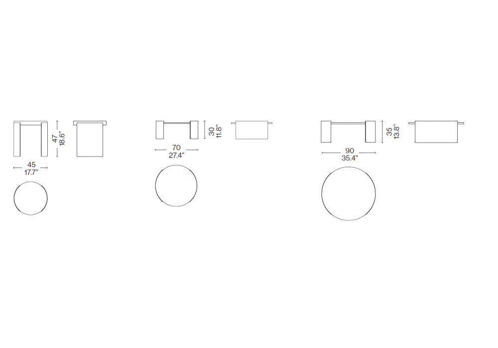 | Dimensions | Ø 45 x H 47 cm; Ø 70 x H 30 cm; Ø 90 x H 35 cm. |