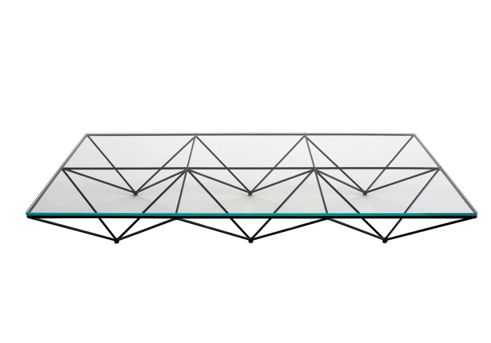 Alanda '18 conçu par Paolo Piva pour B&B Italia est une table basse avec structure en acier peint noir et plateau en verre disponible en deux finitions. Également disponible en deux dimensions différentes.