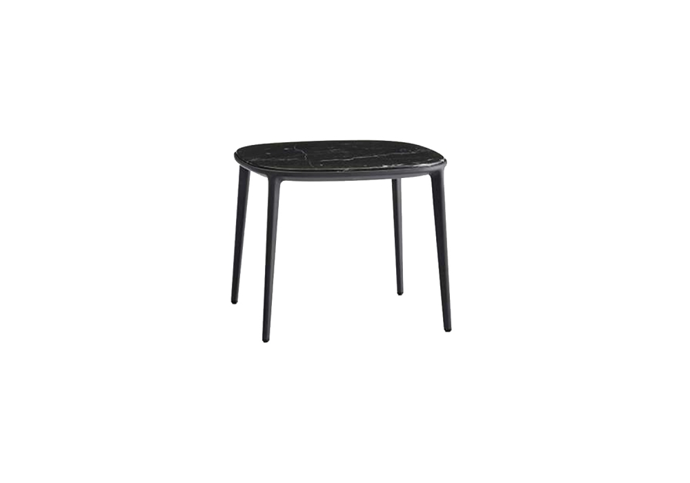 Caratos conçue par Antonio Citterio pour Maxalto est une table basse avec structure en métal et plateau en marbre blanc Carrara ou noir Marquinia. Disponible en trois dimensions.
