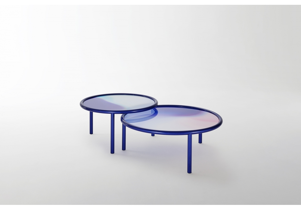 L.A. SUNSET conçue par Patricia Urquiola pour Glas Italia est une table basse avec structure en tube métallique et plateau en verre stratifié opalin. Le plateau est une palette de couleurs qui nuancent et se fondent. Disponible en trois dimensions.