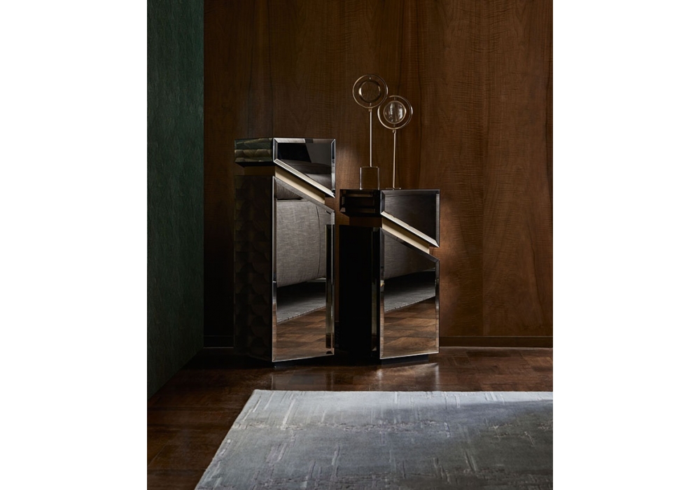 Cyrano conçue par Castello Lagravinese Studio pour Opera Contemporary est une colonne entièrement recouverte d'un miroir bronzé avec une bande métallique. Disponible en 2 dimensions.