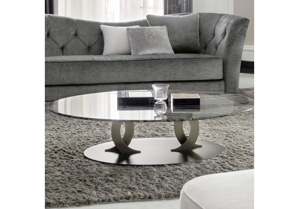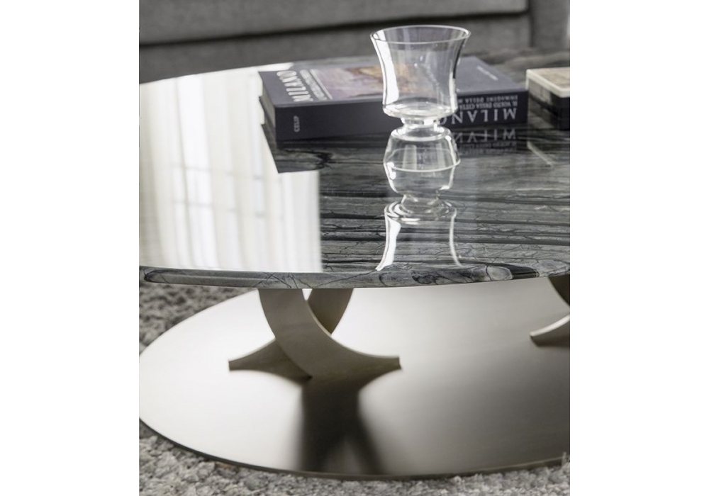 Ludmilla diseñada por Castello Lagravinese Studio para Opera Contemporary est une table basse avec dessus en marbre, disponible en différentes finitions et base en métal. Également disponible en 2 dimensions.