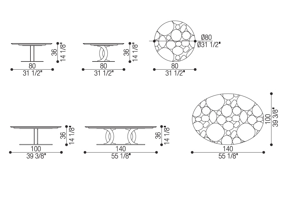| Dimensions | Ø 80 x H 36 cm; 140 x 100 x H 36 cm. |