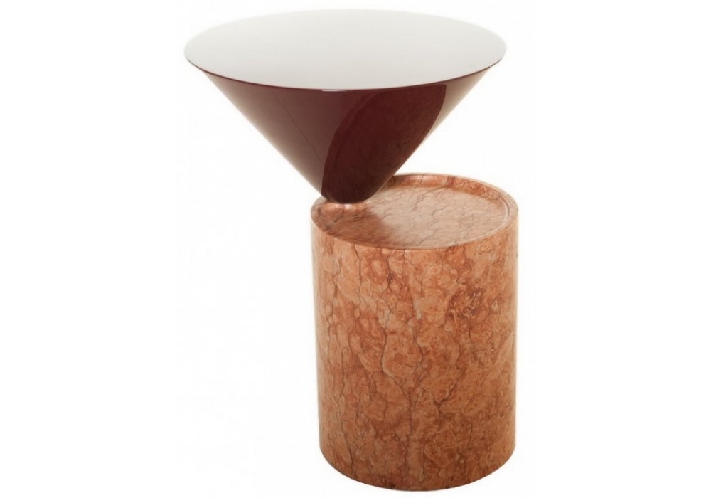 Laurel conçue par Luca Nichetto pour De La Espada est une table d'appoint avec base en marbre, pierre calcaire ou bois et dessus en forme conique disponible en différentes finitions.