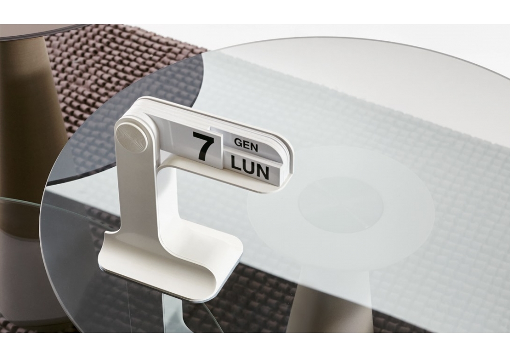Leaf conçue par Luca Martorano pour Neutra est une table basse ronde avec base de pierre en différentes finitions et dessus disponible en pierre, verre, métal ou bois.