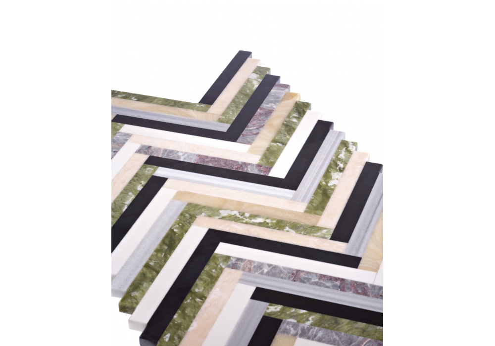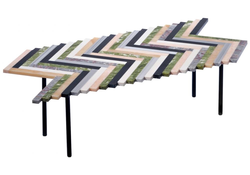 Zig Zag conçue par Patricia Urquiola pour Budri est une table basse réalisée en marbre et onyx. Disponible aussi en 2 dimensions.