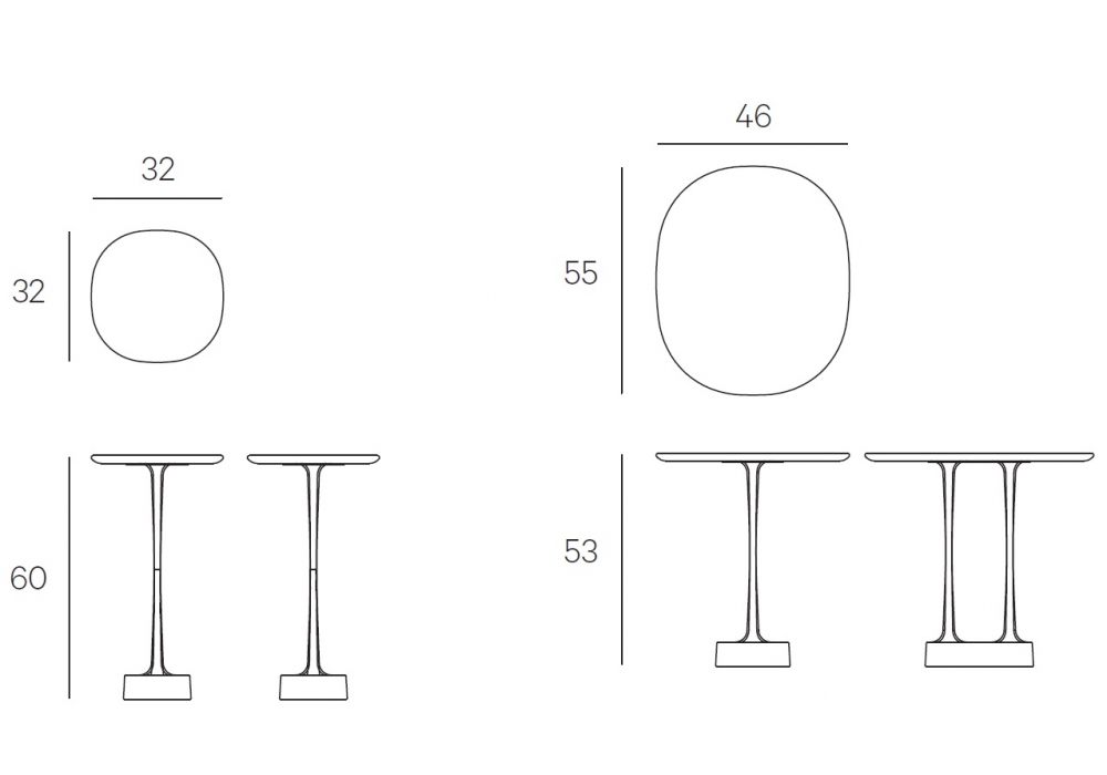 | Dimensions | 32 x 32 x H 60 cm; 46 x 55 x H 53 cm. |