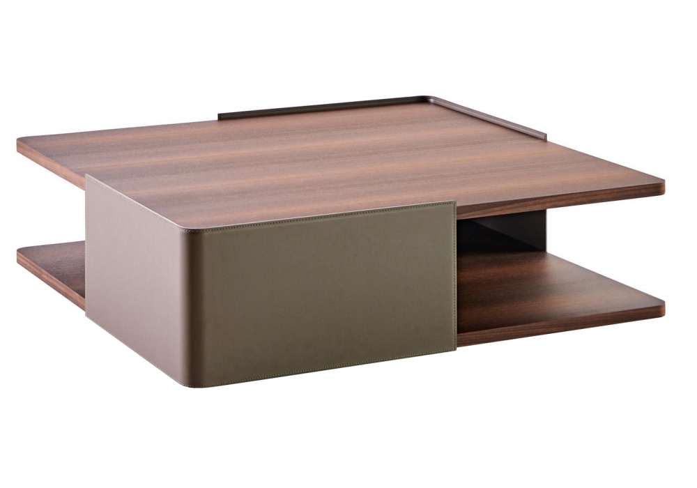 Hubert conçue par Vincent Van Duysen pour Molteni&C est une table basse avec plateau supérieur et inférieur en bois, disponible dans les essences suivantes: eucaliptus et noyer. Eléments de soutien d'angle en cuir régénéré de cinq couleurs. Disponible dans les versions rectangulaires et carrées dans plusieurs dimensions.