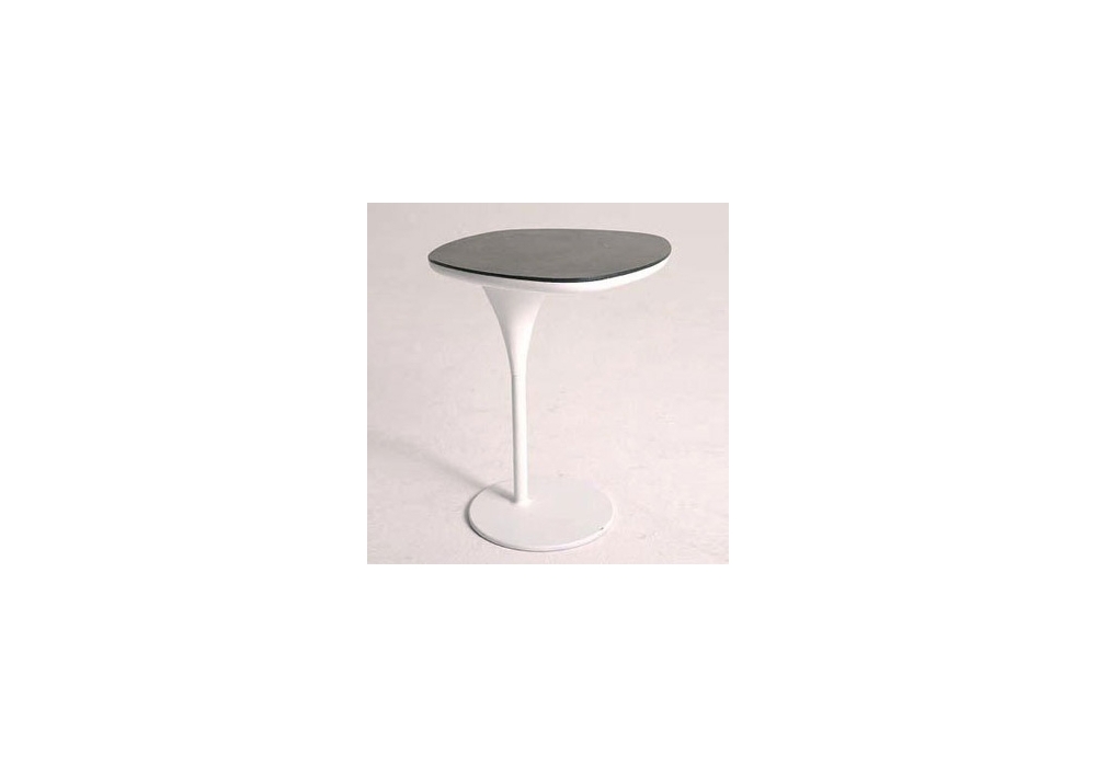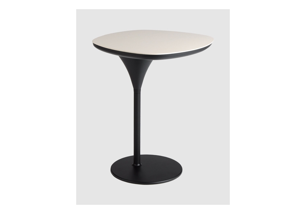 Bloomy conçue par Patricia Urquiola pour Moroso est une table basse avec base en acier peint en noir ou blanc et coque en ABS moulé assortie. Plateau en Laminam®.