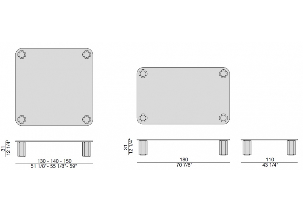| Dimensions | 130 x 130 x H 31 - 140 x 140 x H 31 cm - 150 x 150 x H 31 cm - 180 x 110 x H 31 cm |