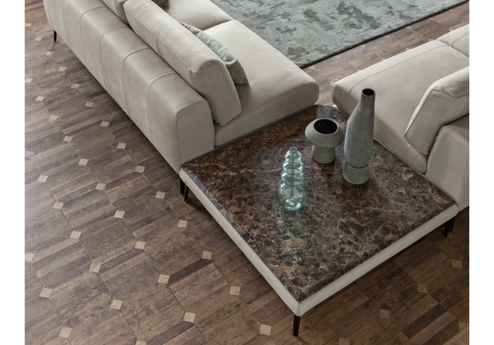 Metrico est une table basse conçue pour Nicoline. La structure de la table basse est en métal avec une finition gunmetal et l'étagère est disponible en marbre dans les finitions carrara ou emperador et en verre imprimé exclusivement pour Nicoline.
