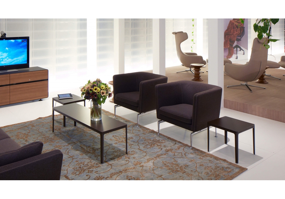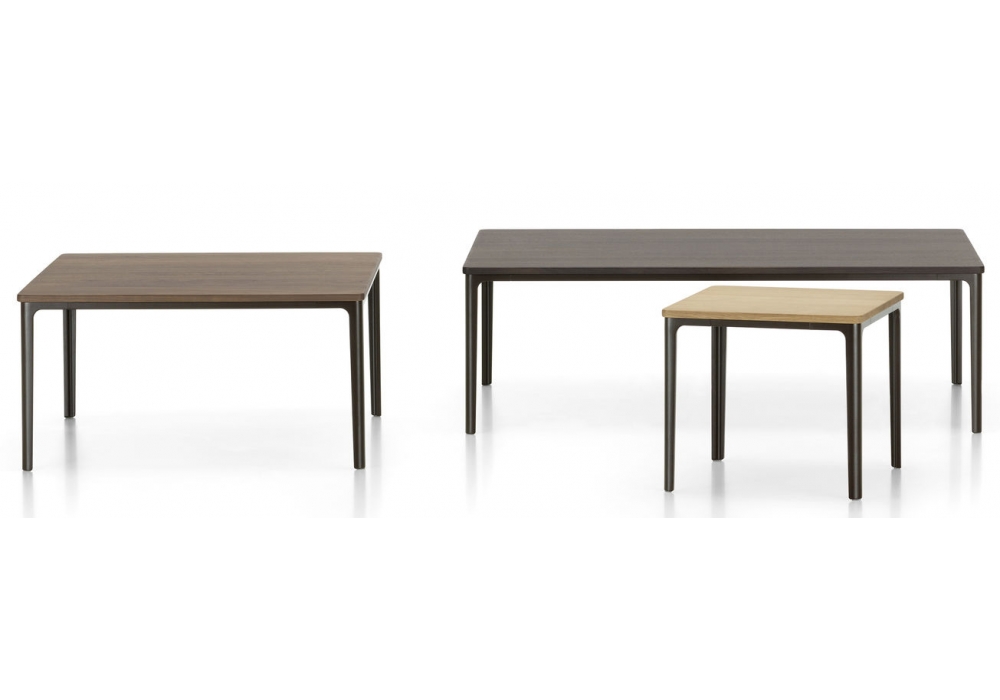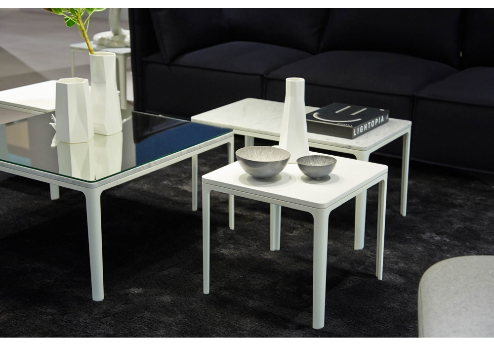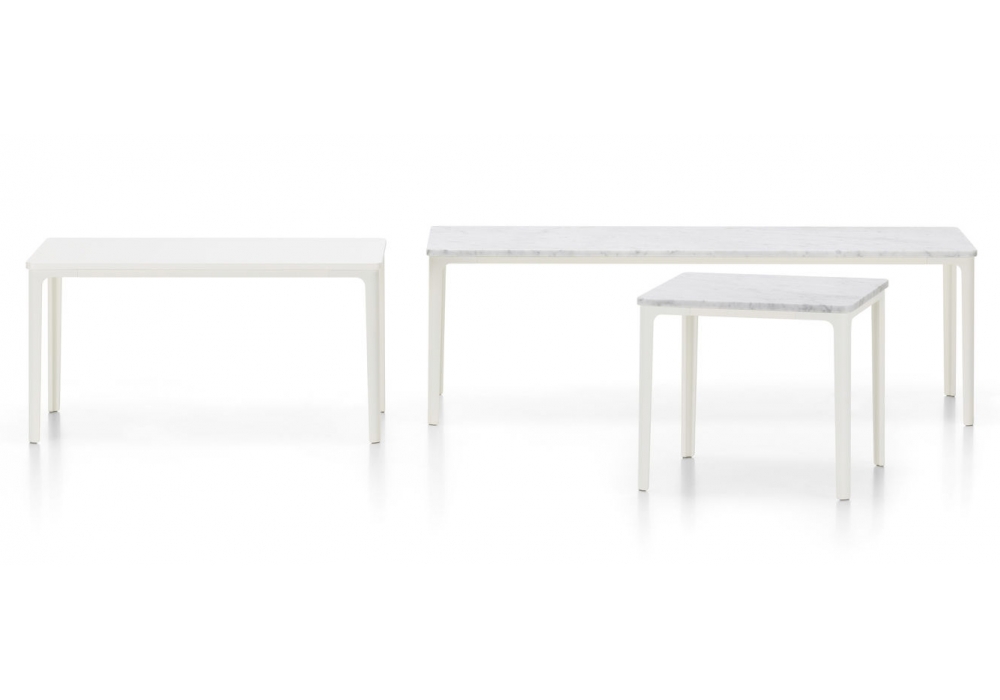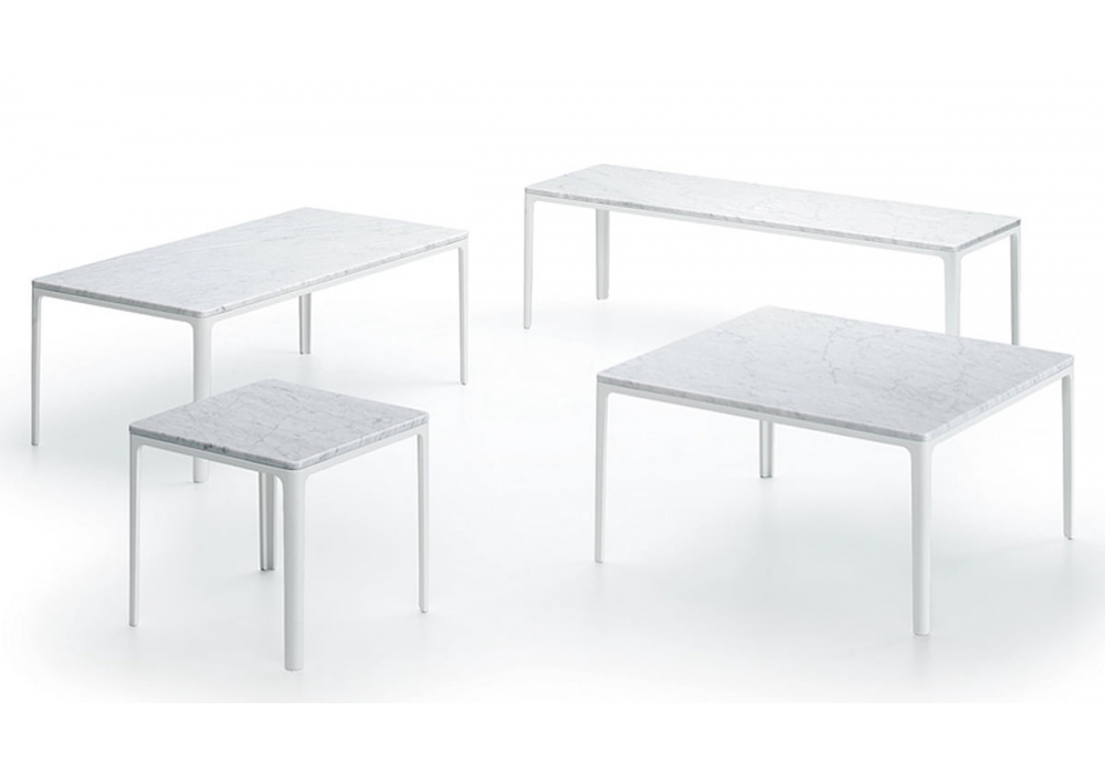 Disponible en deux tailles, l’attrait de cette création réside dans l’alternance d’arrondis plein de douceurs et d’arêtes nettes. Le piètement filigrane et le fin plateau s’allient de manière harmonieuse, bien que clairement dissociés.