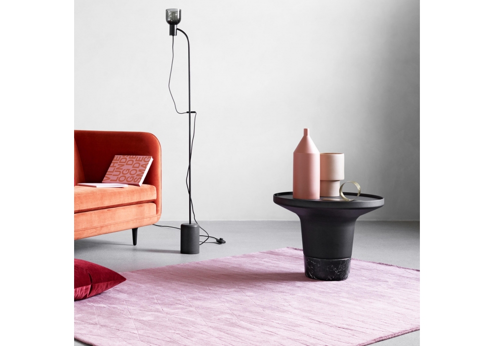 Poller conçue par Oliver Schick pour wendelbo est une table basse avec base en aluminium enduit de poudre noire et marbre. Plan en stratifié noir. Disponible en 2 modèles.
