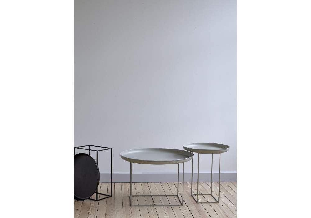 Duke conçu par Rune Krøjgaard et Knut Benedik Humlevik pour Norr11 est une table basse en métal de différentes finitions et tailles. Dessus de table en aluminium tourné et base de table en acier. Les deux enduits de poudre.