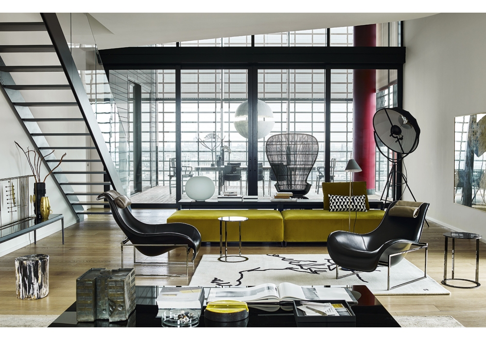 Frank conçu par Antonio Citterio pour B & B Italia est une table d'appoint en acier et hors de disponible en différentes finitions. La position asymétrique des éléments verticaux permet de tirer la base le plus près possible des sièges.