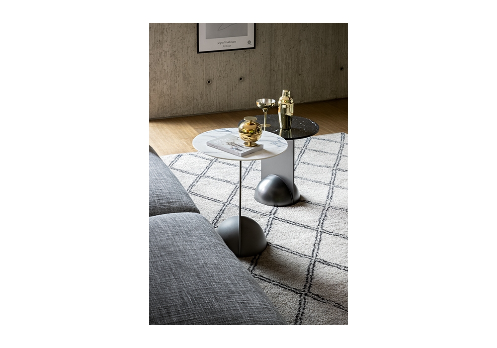 Combination conçue par Alain Gilles pour Bonaldo est une table basse en 2 tailles avec base et structure en métal peint en différentes finitions, le plateau est réalisé en différents matériaux et couleurs. Sur demande, le plateau peut également être en métal dans la même finition que la base.