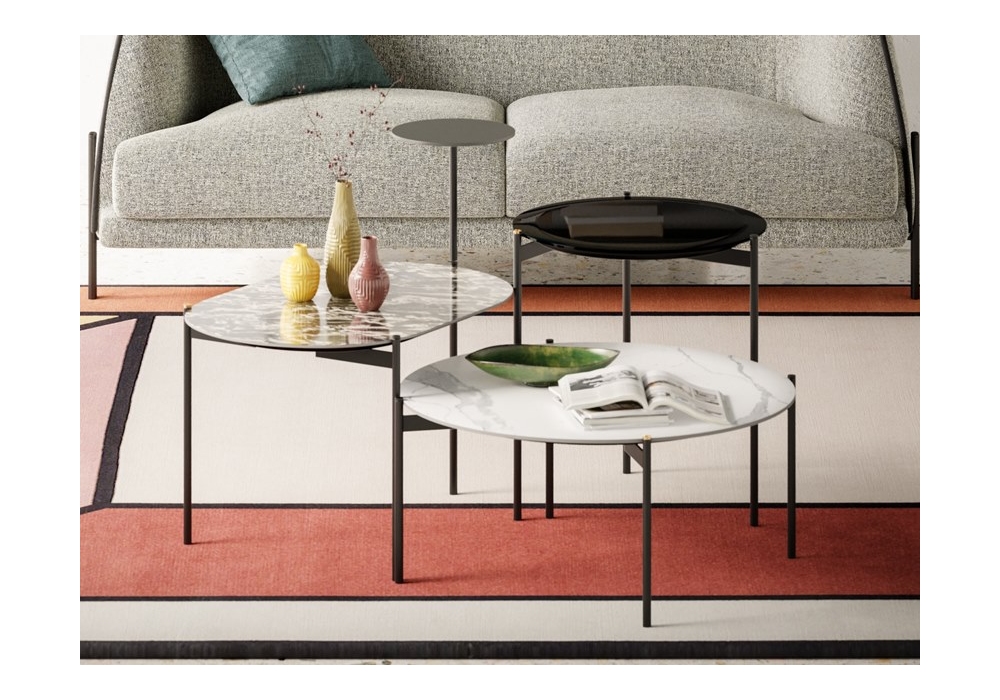Caillou, conçu par Liu Jo Living Collection, est une table basse. Pied en métal peint en poudre. Le plateau est disponible en verre ou en céramique. Disponible en différentes tailles.