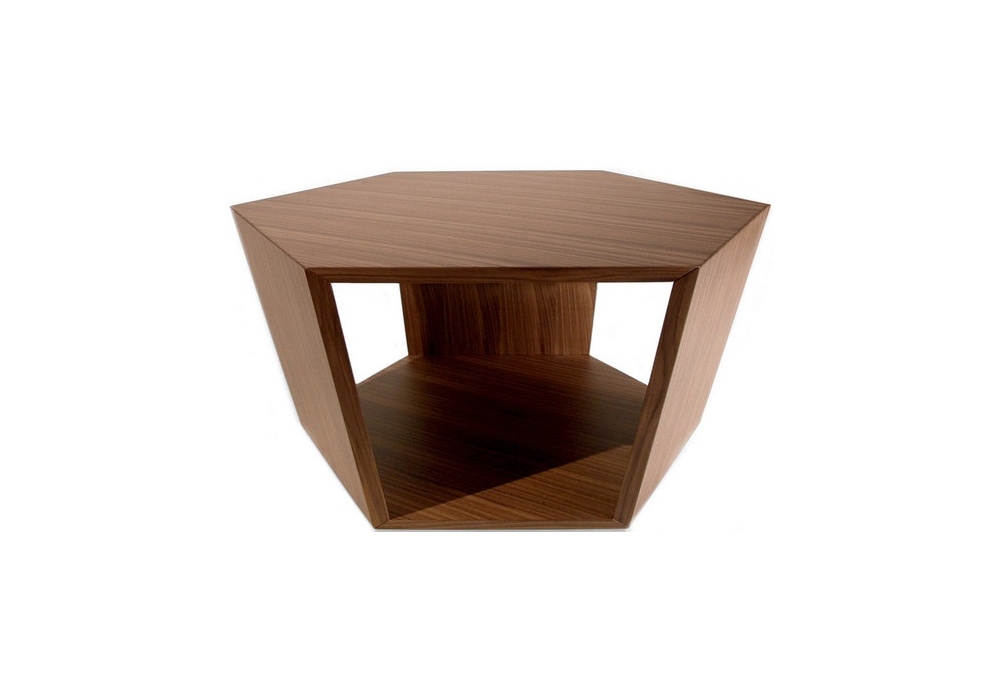 Diamonds conçue par Matthias Demacker pour Tonon est une table basse en forme de diamant en bois plaqué noyer canaletto. Disponible en deux modèles.