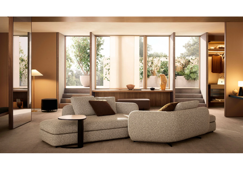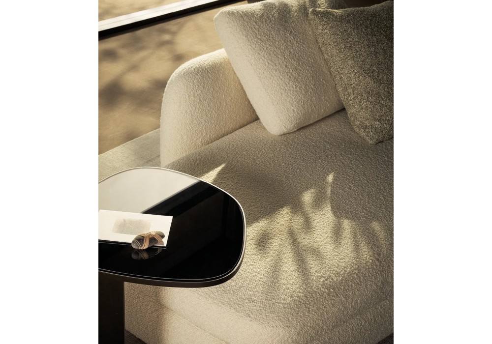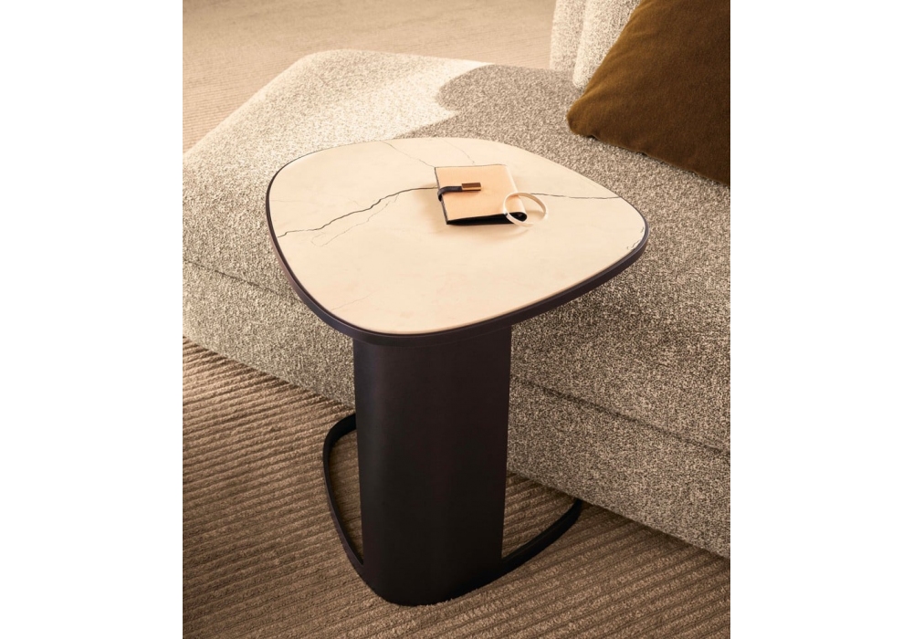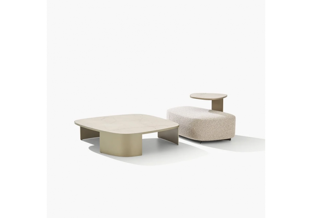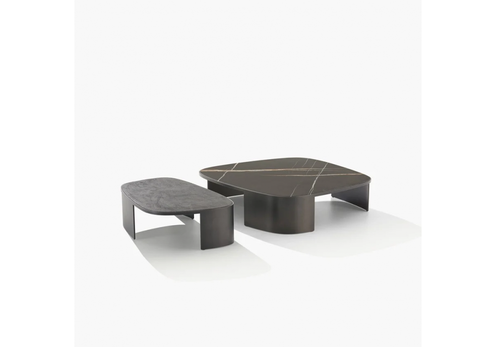 Koishi conçue par Jean-Marie Massaud pour Poliform est une collection de tables d'appoint. Structure en métal peint mat en finition champagne ou bruni. Plateau disponible en marbre, pierre, bois ou verre.