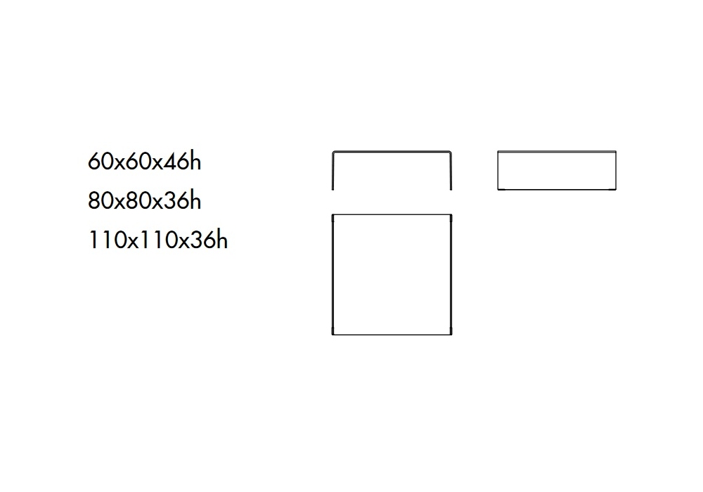 | Dimensions | 60 x 60 x H 46 cm; 80 x 80 x H 36 cm; 110 x 110 x H 36 cm |