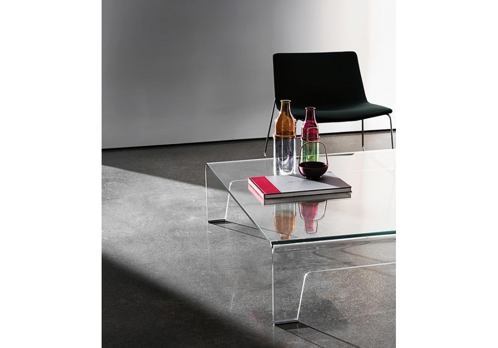 Frog conçue par Lievore, Altherr, Molina pour Sovet est une table basse en verre transparent, fumé ou laqué main. Disponible en différentes finitions et dimensions.