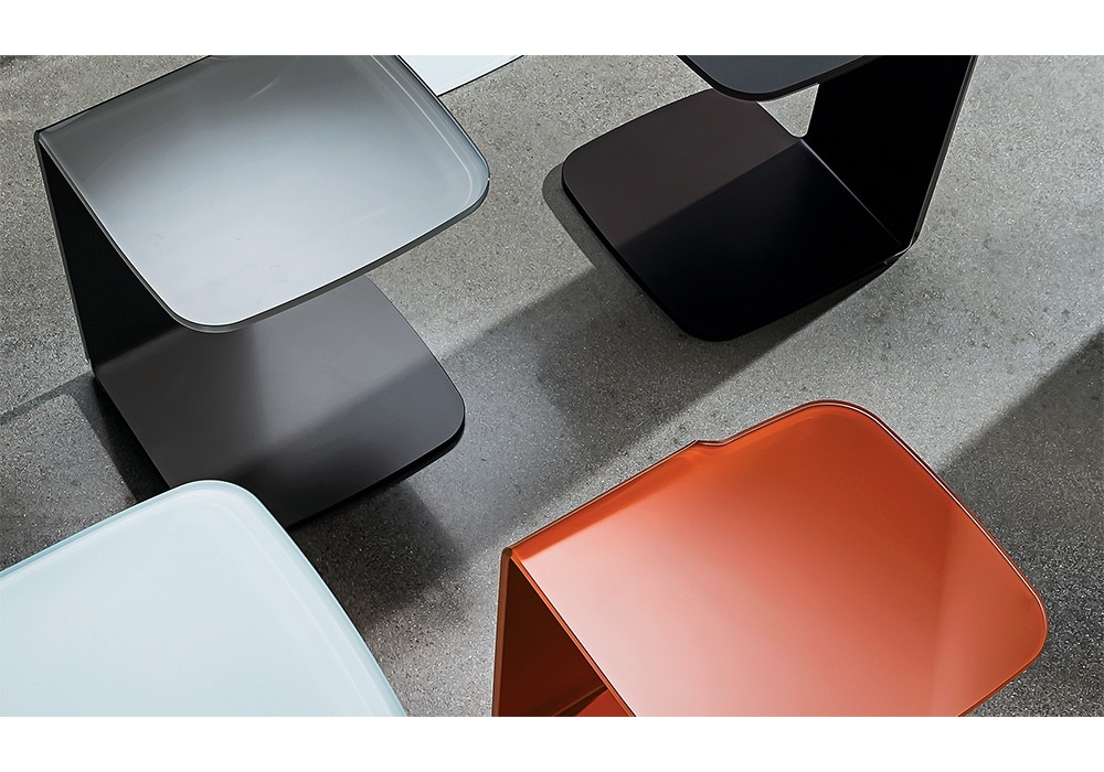Shell Colour conçue par Lievore, Altherr, Molina pour Sovet est une table basse en verre laquée. Disponible en différentes finitions.