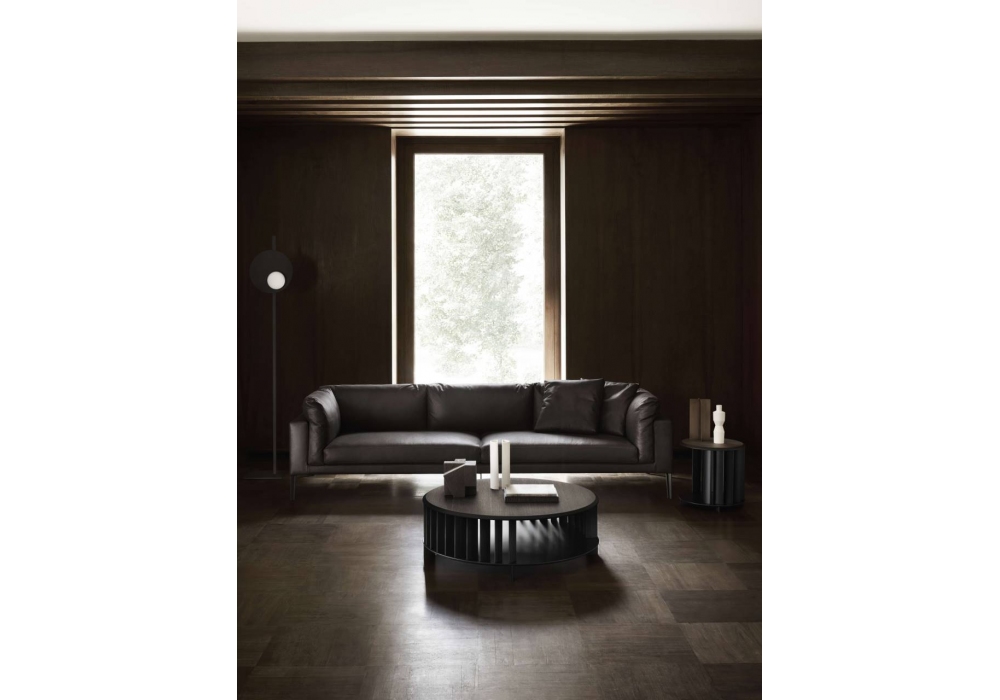 Islands conçue par Stephen Burks pour Living Divani est une table basse disponible en trois hauteurs et diamètres différents, accessible sur tout le périmètre grâce à une série de bandes pivotantes, avec plateau en marbre ou en bois.