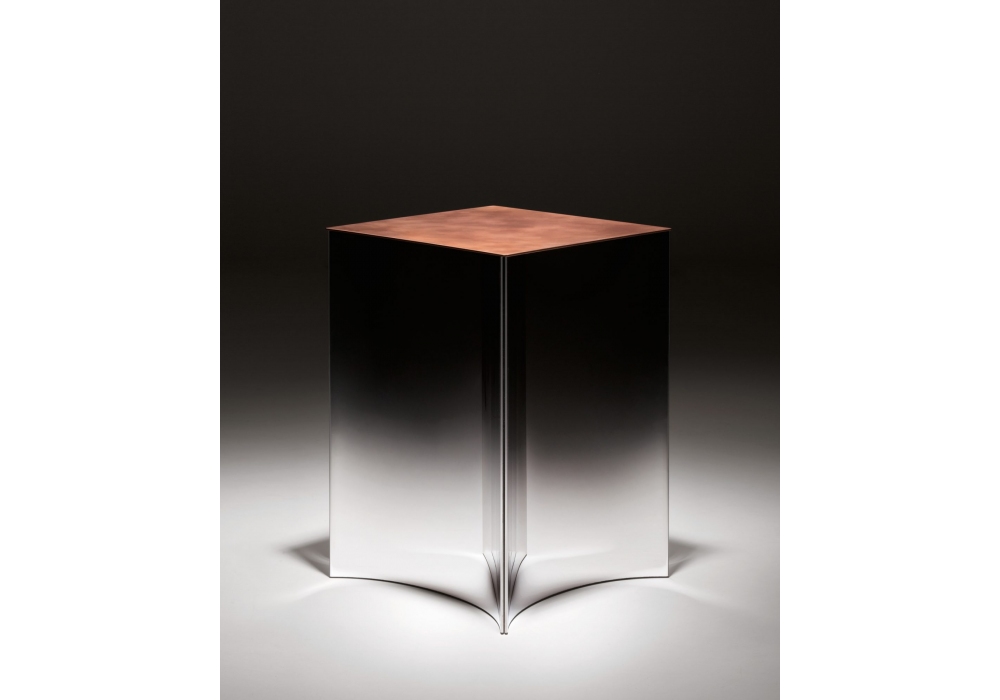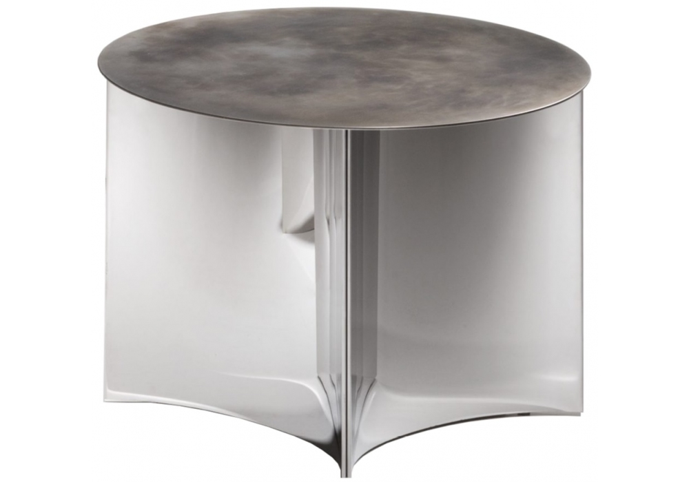 Alchemy conçue par Stormo Studio pour DeCastelli est une table basse en métal avec une base en acier poli miroir. Disponible en différentes finitions et dimensions.