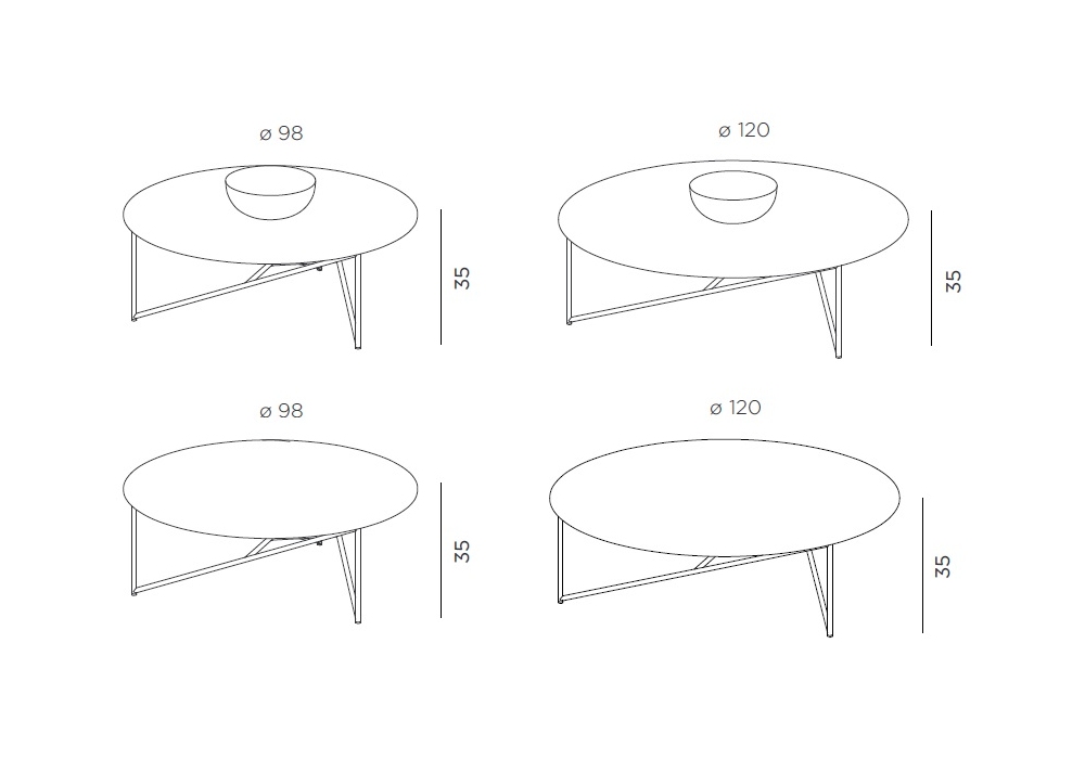 | Dimensions | • Ø 98 x H 35 cm; • Ø 120 x H 35 cm |