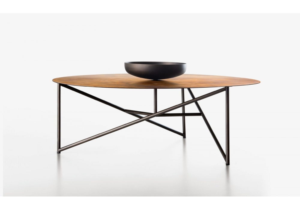 Parsec conçue par Emilio Nanni pour DeCastelli est une table basse réalisée avec un plateau rond en métal. Disponible en différentes finitions et dimensions. Disponible en versions avec ou sans bol centrale.