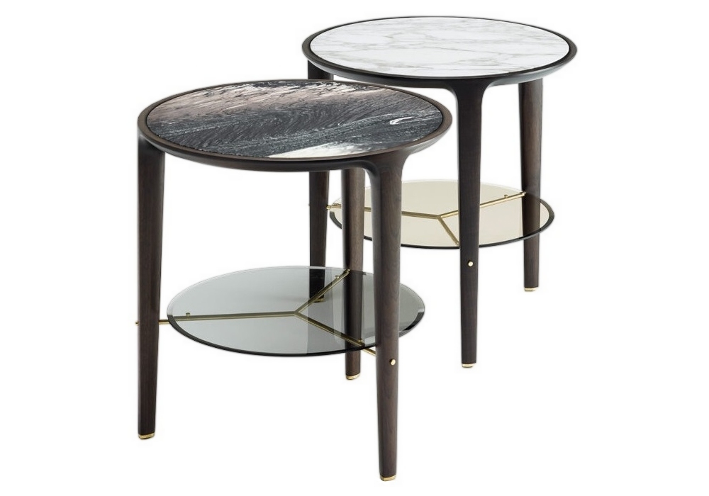 Sweet Dreams conçue par DRAW pour Ceccotti Collezioni est une table d'appoint en noyer américain massif, disponible en différentes finitions. Plateau double en verre trempé 8 mm, ou plateau supérieur en marbre et plateau inférieur en verre.