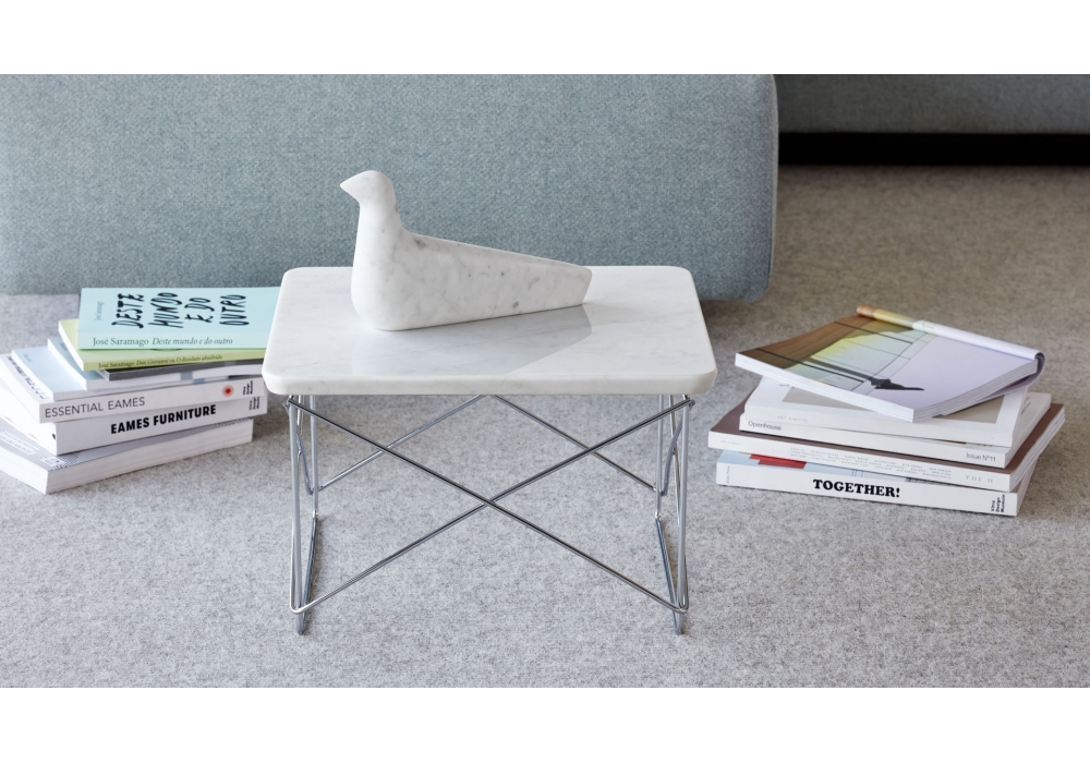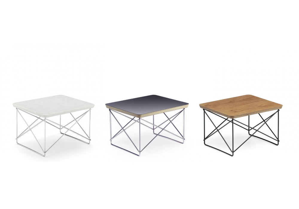 LTR conçue par Charles & Ray Eames pour Vitra est une table basse réalisée avec une base en acier chromé ou laqué époxy. Plateau en HPL, bois ou marbre. Disponible en différentes finitions.