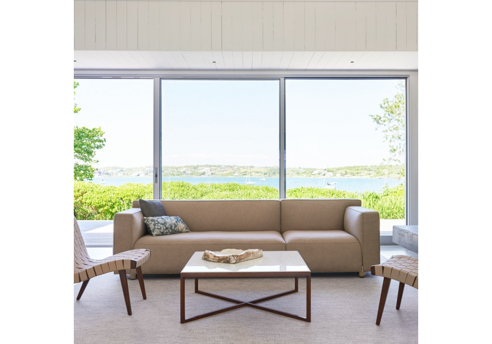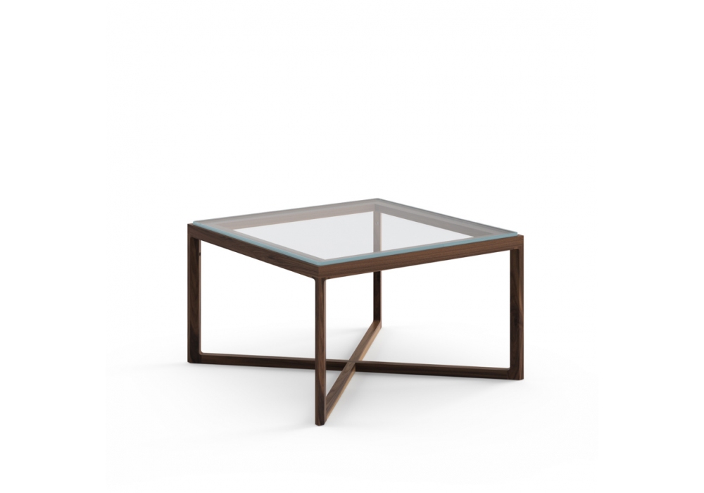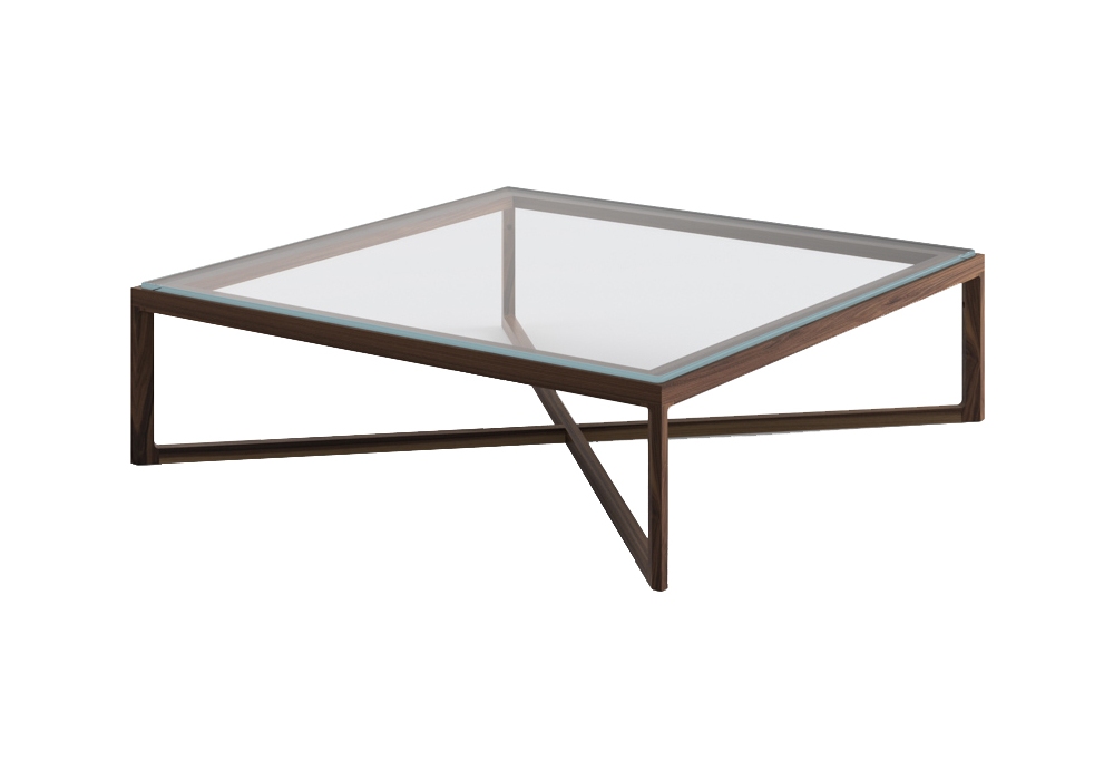 Marc Krusin conçue par Marc Krusin pour Knoll est une table basse en structure en chêne et plateau en verre, marbre ou chêne.