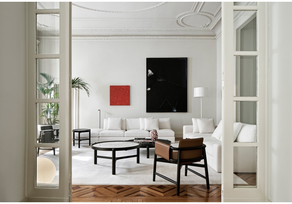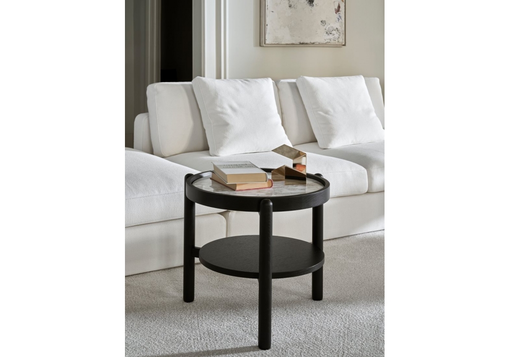 Vittorio conçu par Andrea Parisio pour Meridiani est une collection de tables basses avec structure en chêne massif teinté ou en hêtre massif laqué. Plateau disponible en marbre, verre ou chêne teinté. Certains modèles de tables basses ont une sous-plateau.