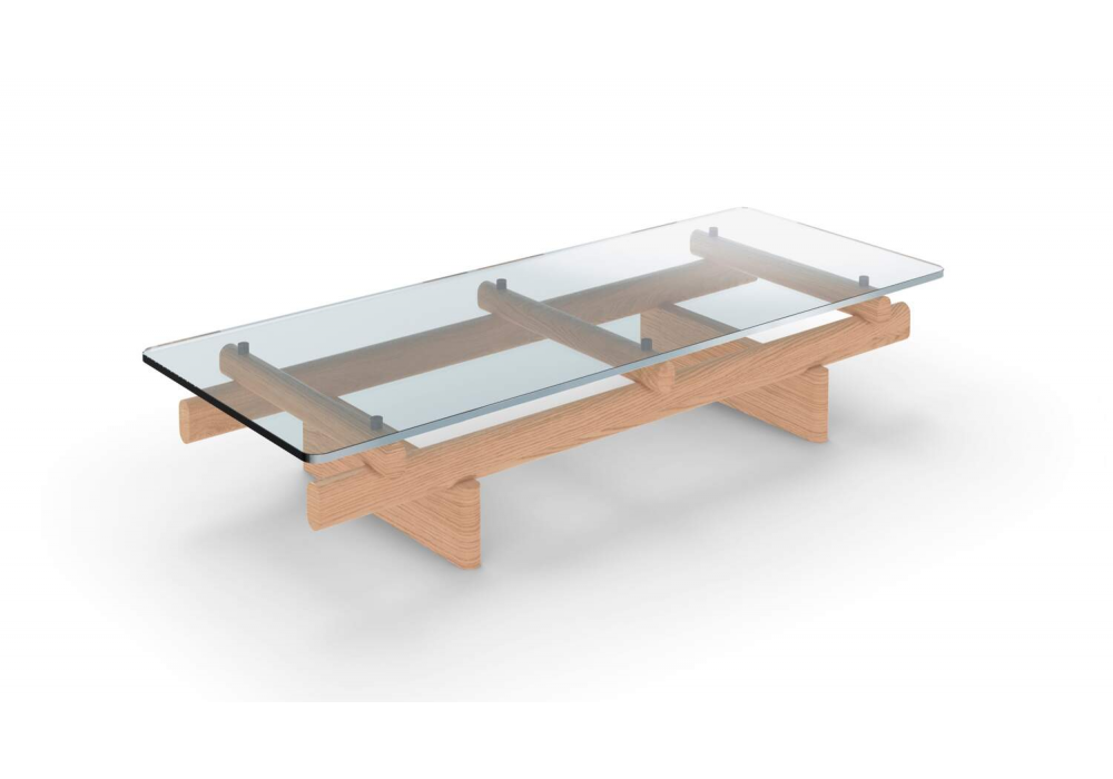 564 Sengu conçue par Patricia Urquiola pour Cassina est une table basse réalisée avec un plateau en verre ou en marbre et une structure en bois. Disponible en différentes finitions et dimensions.
