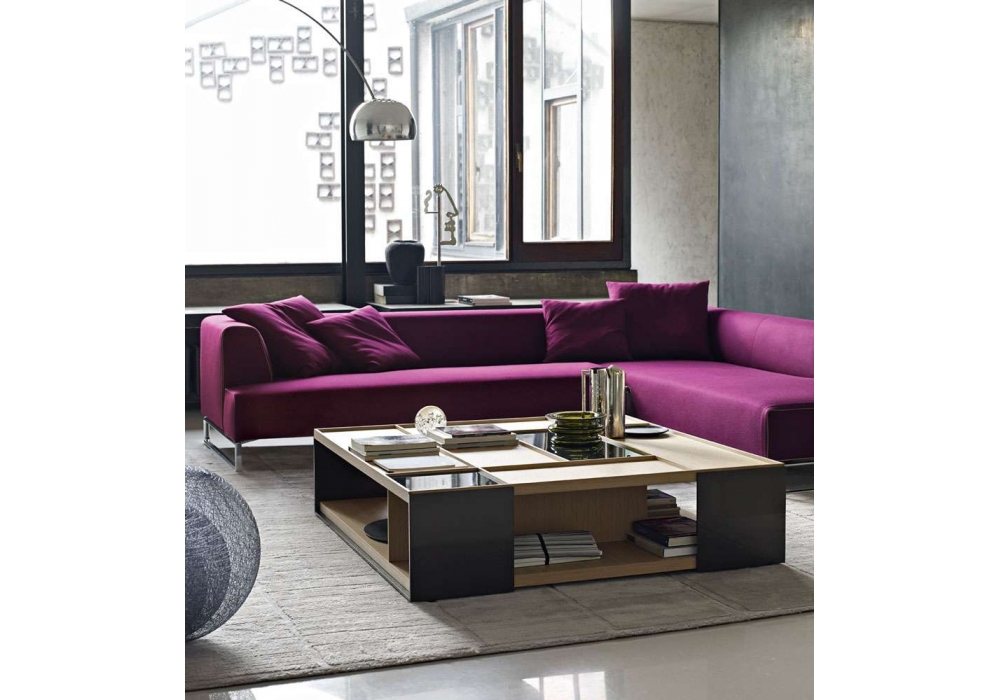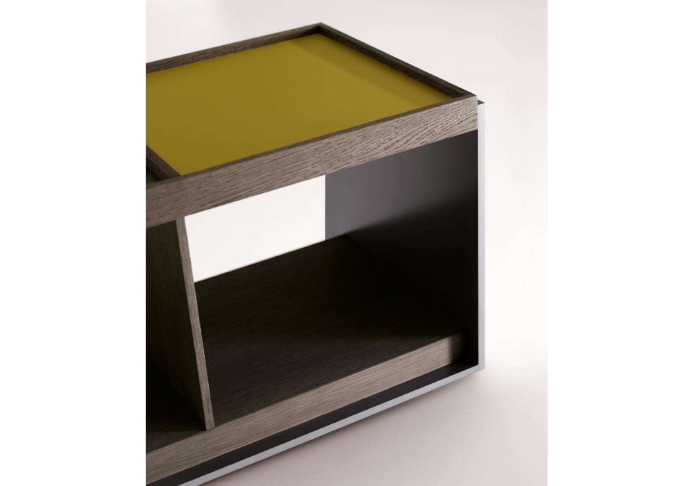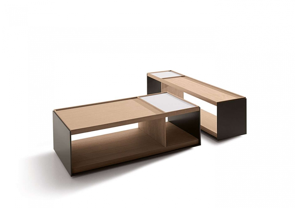 Surface conçue par Vincent Van Duysen pour B&B Italia est une collection de tables basses avec structure en chêne gris, chêne clair brossé, chêne noir brossé ou chêne fumé. Côtés et socle en tôle d’acier verni nickel bronzé, chromé brillant ou verni chromé noir. Insert en panneau de fibre de bois MDF verni satiné ou brillant.