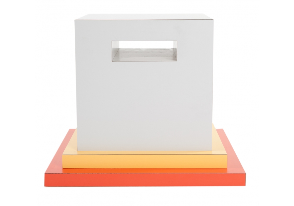 Cream conçue par Ettore Sottsass pour Memphis Milano est une table d'appoint réalisée en stratifié plastique.