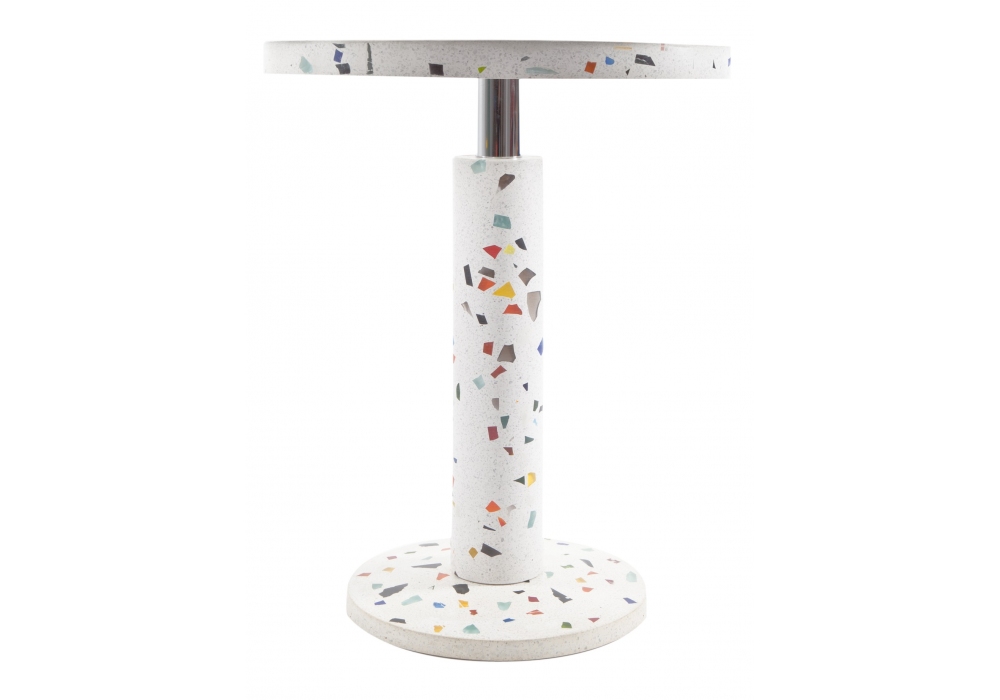 Kyoto conçue par Shiro Kuramata pour Memphis Milano est une table d'appoint en métal et conglomérat de béton.