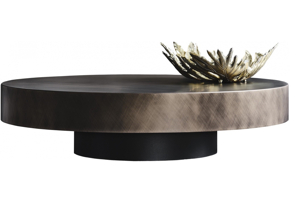 Arena conçue par Yasuhiro Shito pour Cattelan Italia est une table basse avec plateau en finition laquée Brushed Bronze ou Brushed Grey et base en acier laqué gaufré noir.