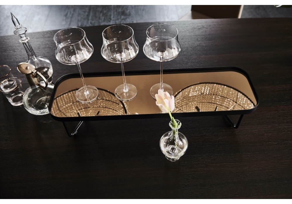 Benny conçue par Studio Kronos pour Cattelan Italia est une table basse avec plateau en verre bronze miroir. Structure en acier laqué gaufré noir ou titane ou base en Bronze et cadre supérieur en Brushed Bronze.