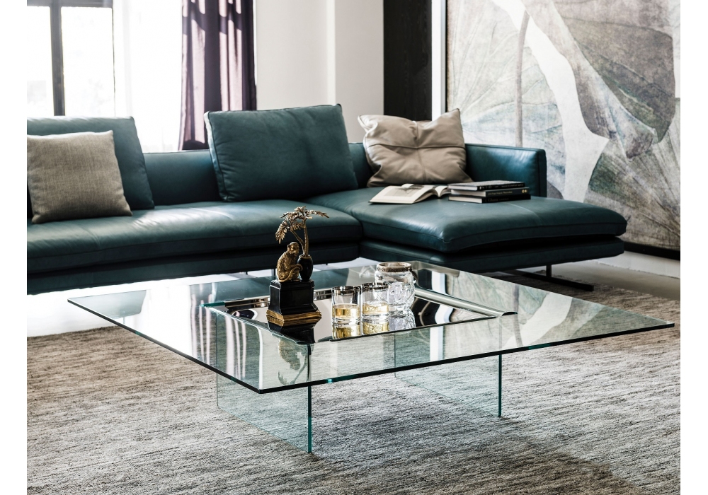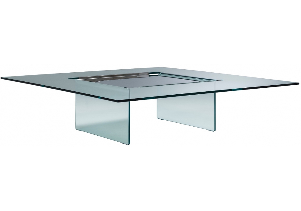 Carrè conçue par Giorgio Cattelan pour Cattelan Italia est une table basse carrée en verre clair courbé. Plateau en acier inoxydable en option.