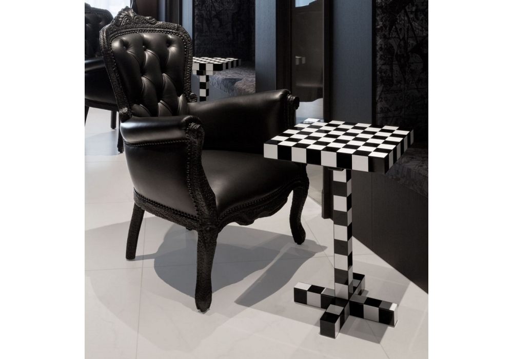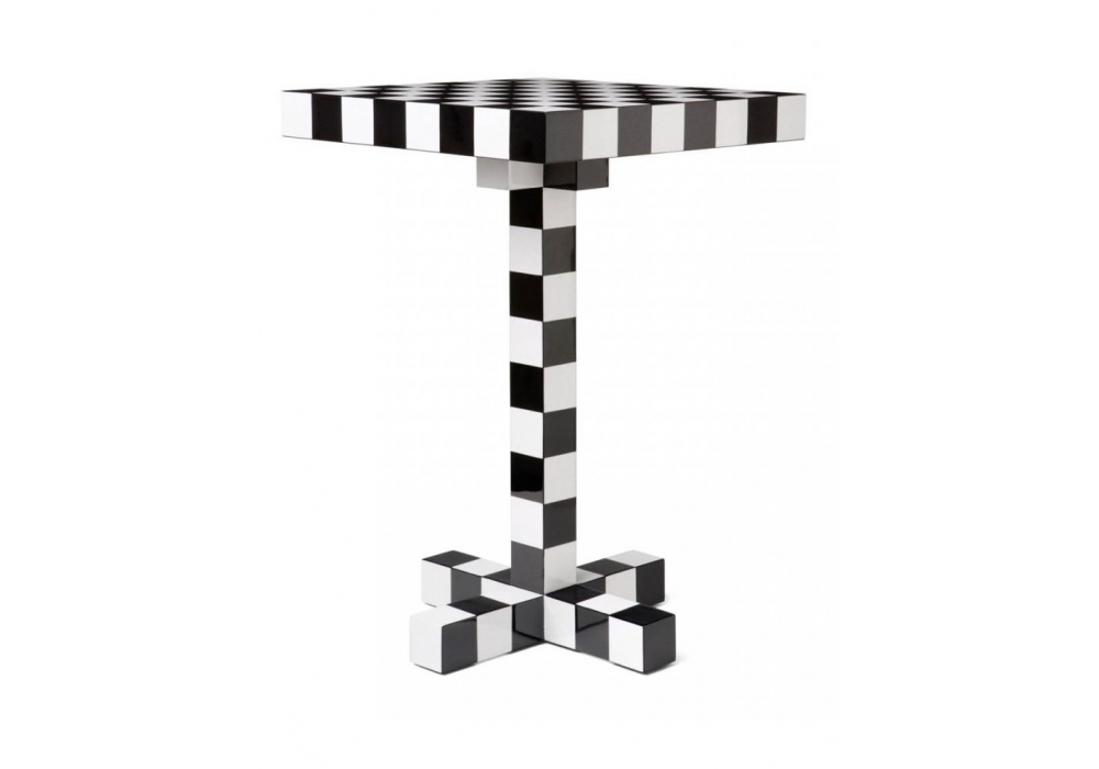 Chess Table conçue par Front pour Moooi est une petite table en bois laqué avec structure en acier. Cette table au look original comblera aussi bien les amoureux d'échecs que les adeptes de design hors du commun ! Plateau, pied et base : la table est entièrement recouverte de carrés noirs et blancs ! Des motifs géométriques, très graphiques mais également très pratiques : plus besoin de plateau de jeu pour se livrer à une partie d'échec endiablée.