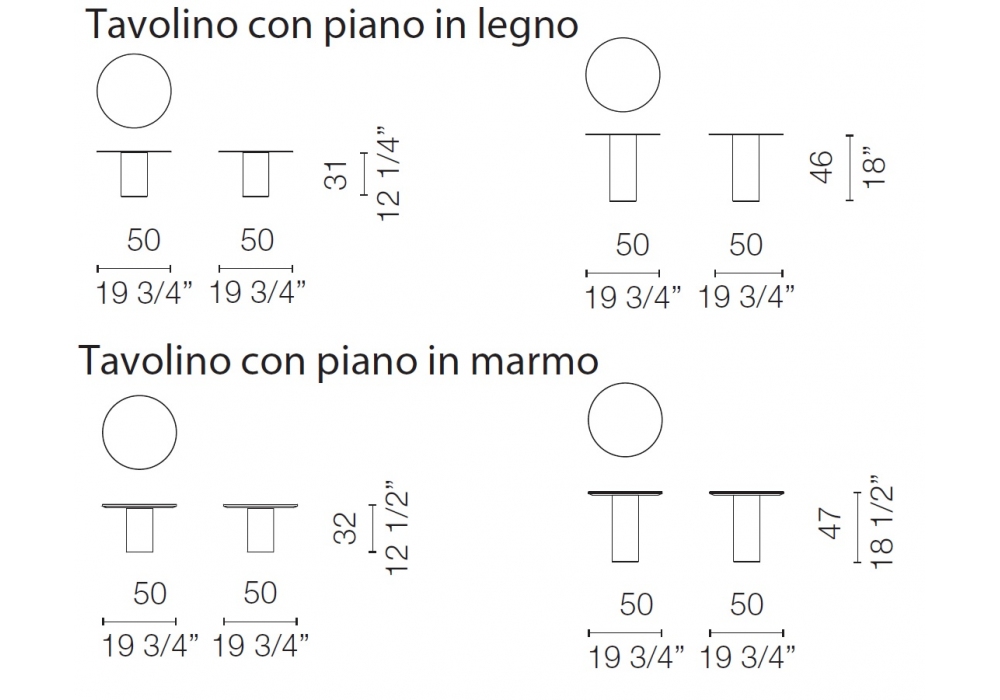 | Dimensions | Ø 50 x H 31/31 cm; Ø 50 x H 46/47 cm |