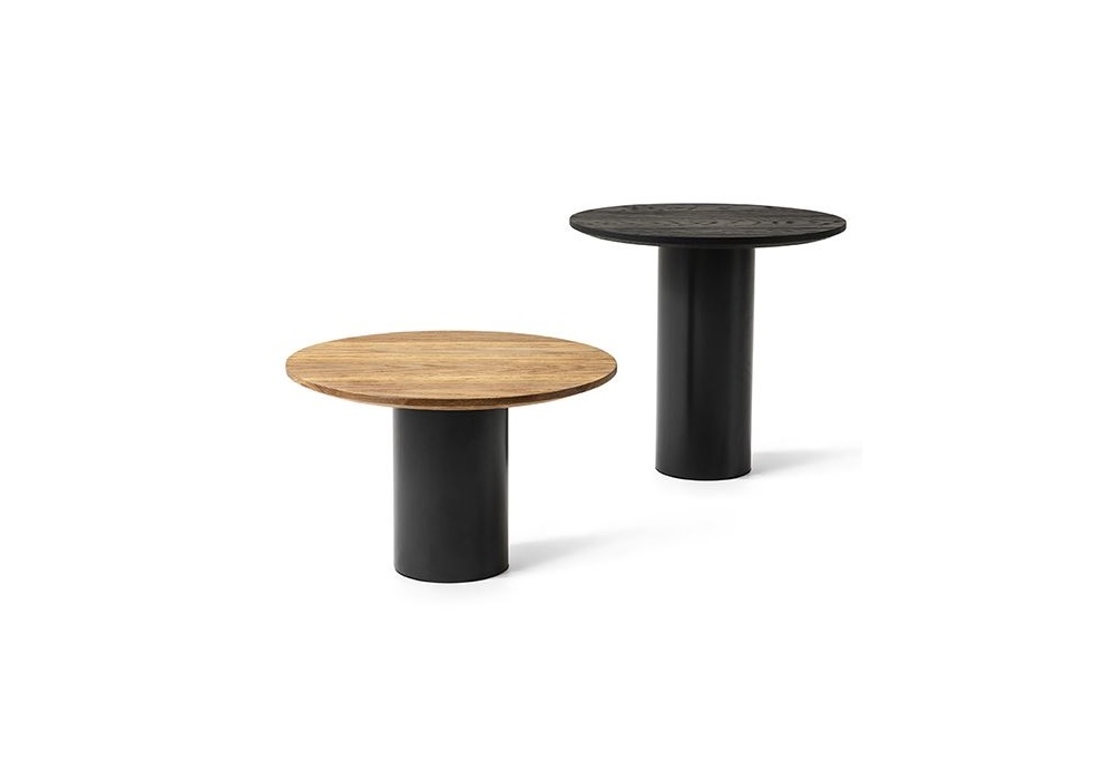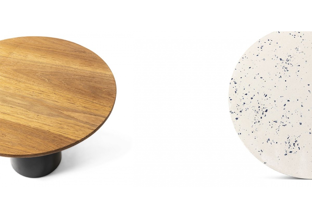 Mush conçue par Giulio Cappellini pour Cappellini est une table d'appoint avec base cylindrique en métal peint anthracite et plateau en bois ou marbre. Disponible en différentes finitions et dimensions.