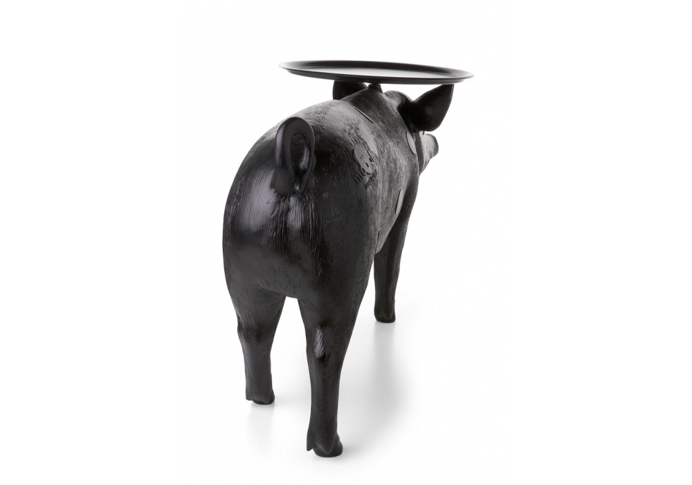 Pig Table par Front pour Moooi est une table-sculpture surprenante et pleine d'humour qui se situe à la frontière entre l'art contemporain et le design industriel. Réalisé en polyester noir, le corps de l'animal laisse apprécier une multitude de détails plus vrais que nature. Ce sympathique cochon au réalisme troublant investit nos intérieurs de façon insolite, créant un univers onirique et fantastique.