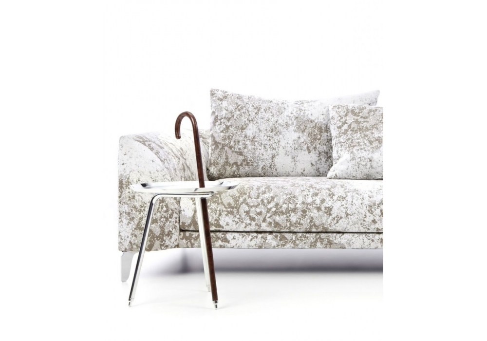 Urbanhike conçue par Marcel Wanders pour Moooi est une petite table ludique, nomade et facile à vivre que l'on déplace de la cuisine au salon selon nos envies. Fabriquée en acier chromé et aluminium plaqué bois, « Urbanhike » se caractérise par la présence d'une authentique cane finition noyer, qui constitue le troisième pied de la table et traverse le plateau. Véritable prolongement de la structure, cette drôle de poignée assure la bonne prise en main du produit tout en garantissant un équilibre parfait lors du transport.