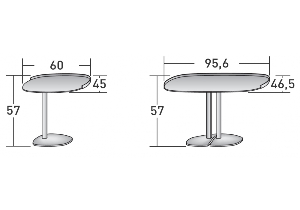 | Dimensions | 60 x 45 x H 57 cm; 95,6 x 46,5 x H 57 cm |